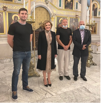 De gauche à droite : Père Sévastianos, M. Michel Calpaxides, président de l'église orthodoxe grecque de Marseille, Mme Balta et Père Ambroise. Ce dernier a accueilli officiellement Madame l'Ambassadeur.