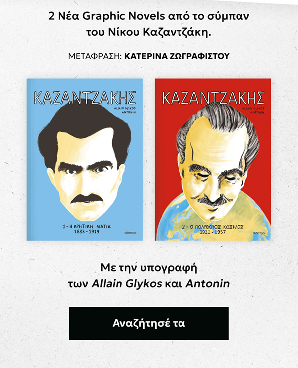Pour ceux et celles qui n’auraient pas vu passer l’information, j’ai le plaisir de annoncer la parution en grec des deux tomes de mon roman graphique consacré à la vie de Kazantzaki.