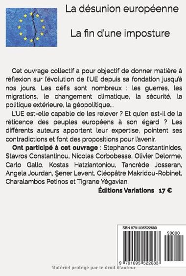 Les Éditions Variations annoncent la parution du livre collectif intitulé « La désunion européenne. La fin d’une imposture », sous la direction de Charalambos Petinos et un article liminaire d’Olivier Delorme.