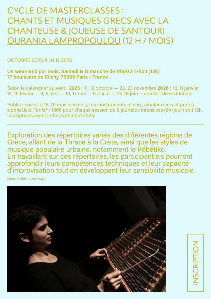 PARIS 2025 : Ateliers masterclasses de musiques avec Ourania Lampropoulou