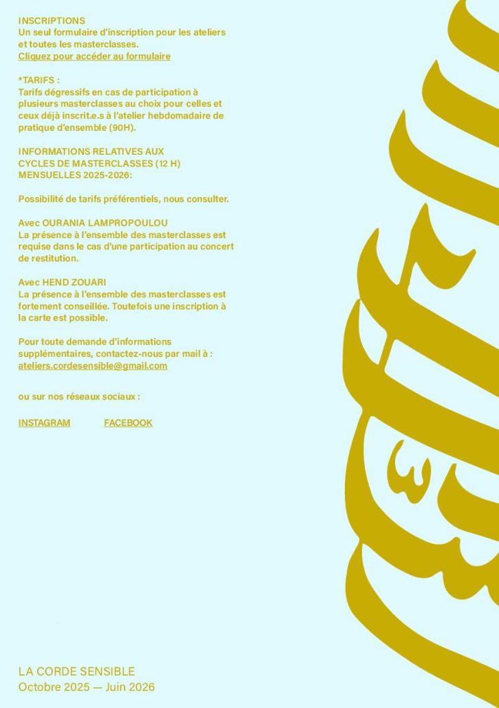 J’espère que vous avez passé un bel été. Je suis heureuse de vous annoncer le lancement d’un nouveau cycle de Masterclasses organisé par l’Association LA CORDE SENSIBLE, consacré aux musiques grecques, qui se déroulera de octobre 2025 à juin 2026.