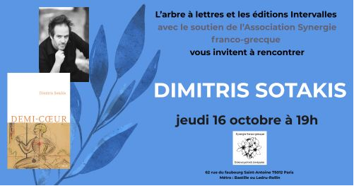 Le 16 octobre, rencontre exceptionnelle avec Dimitris Sotakis à la librairie L'Arbre à lettres Bastille.