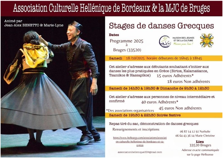 BRUGES (33) Stage de danses grecques le 18 octobre