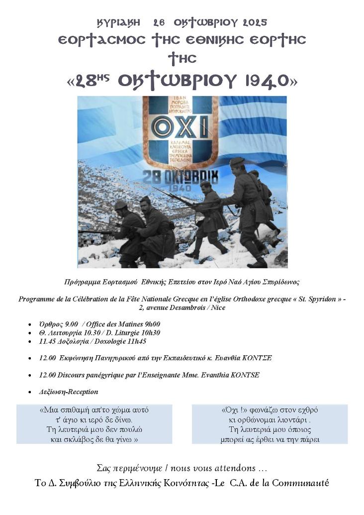 Πρόσκληση στον εορτασμό της 28ης Οκτωβρίου 1940