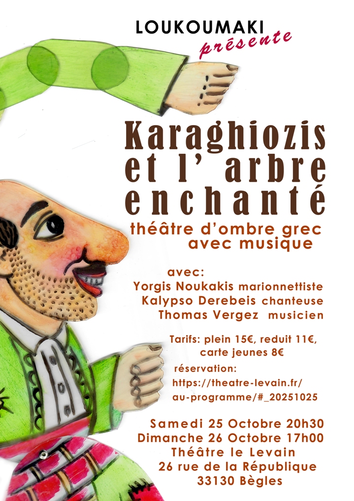 . Nous avons le plaisir de vous annoncer que le week-end prochain 25/26 octobre la Grèce et son Karaghiozi sera à l'honneur au Théâtre du Levain