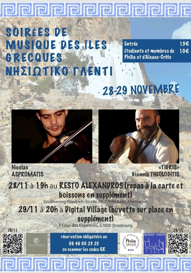 STRASBOURG Soirée de musique des iles grecques les 28 et 29 novembre