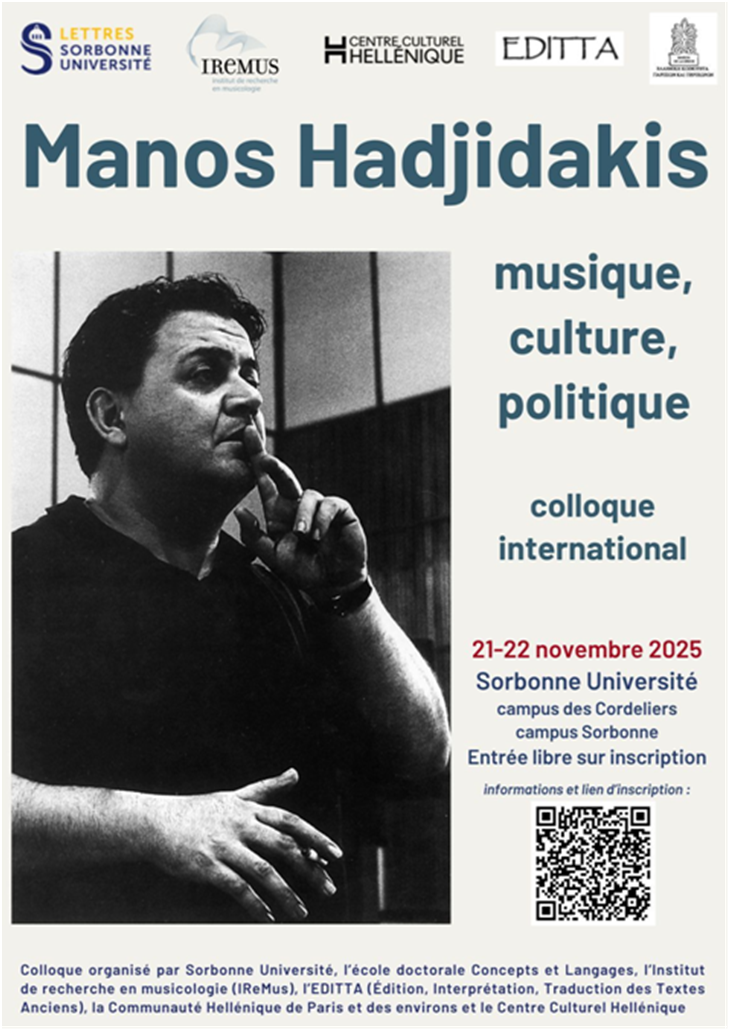 PARIS Colloque Manos Hadjidakis musique, culture et politique les 21 et 22 novembre Colloque Manos Hadjidakis musique, culture et politiqueTout le programme ici