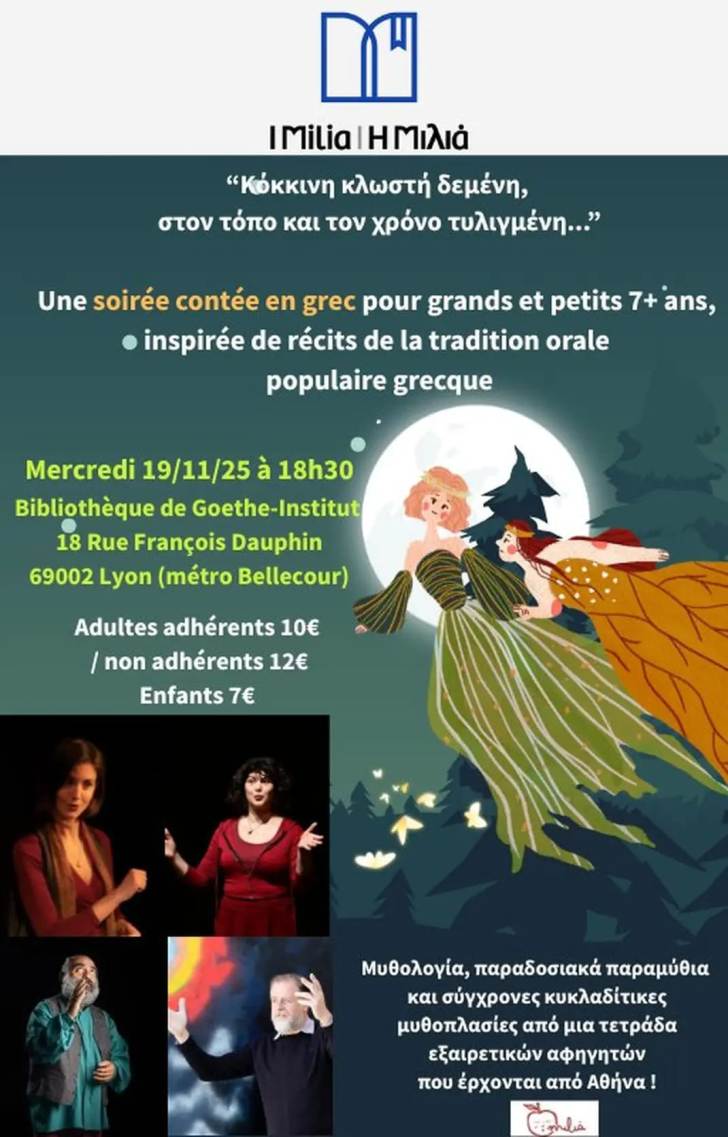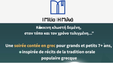 Notre association organise une soirée contée en grec pour grands et petits (de 7 à 107 ans...), inspirée de récits de la tradition orale populaire grecque par des narrateurs professionnels venant de Grèce !