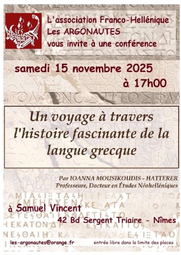 Conférence "Un voyage à travers l'histoire fascinante de la langue grecque" par Ioanna Moussikoudi le 15 novembre