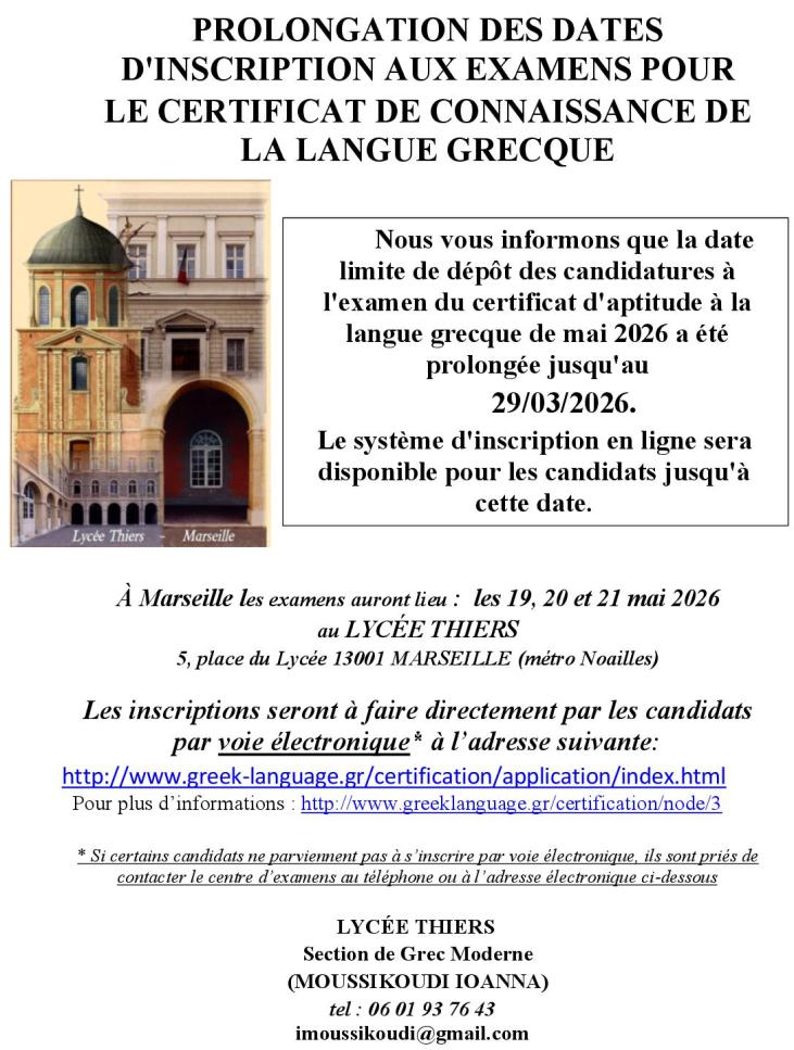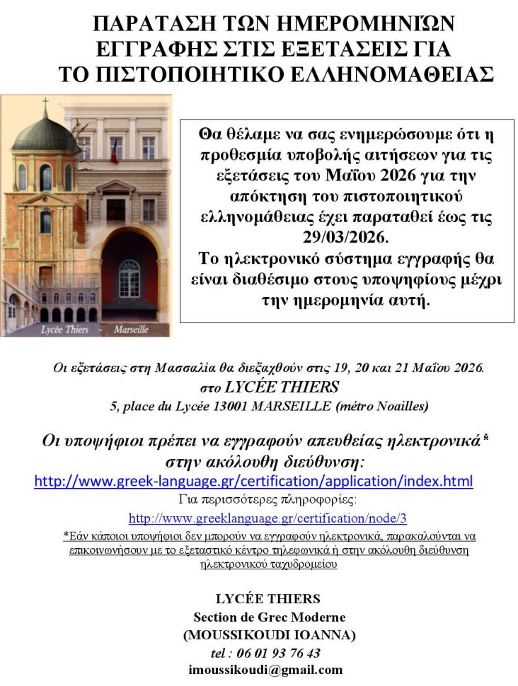 ΜΑΣΣΑΛΙΑ : Παράταση των ημερομηνιών εγγραφής : Εξετάσεις πιστοποίησης επάρκειας της ελληνομάθειας