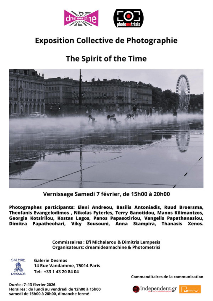 La dreamideamachine AMKE et le Club Photographique Photométrique de Salamine, vous invitent, samedi 7 février 2026, de 15h à 20h à l’exposition collective « The Spirit of the Time » qui aura lieu à l'espace d'exposition Galerie Desmos, à Paris.