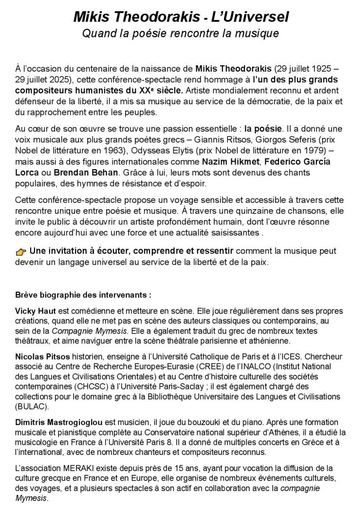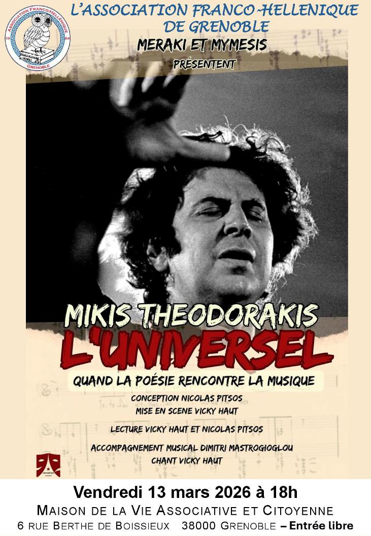 Conférence-spectacle : Mikis Theodorakis - L’Universel "Quand la poésie rencontre la musique" le 13 mars