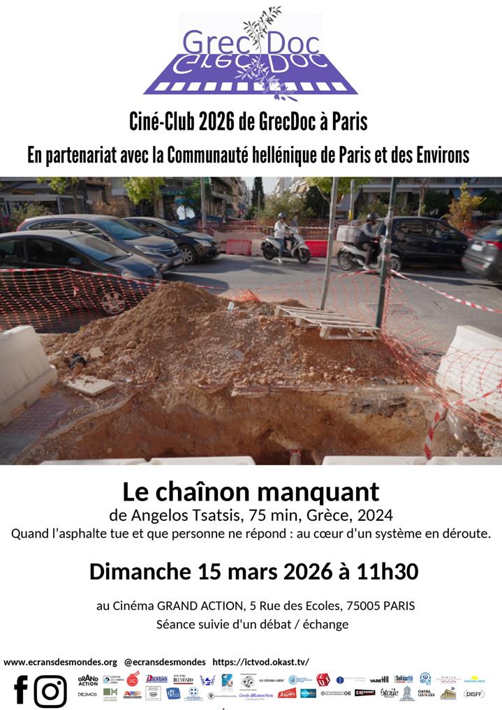 Le film que GrecDoc vous propose à 11h30 dimanche prochain, au cinéma Grand Action à Paris, et dans d'autres cinémas en régions ultérieurement, s'est donné comme mission, à partir de deux cas précis ayant entraîné la mort de deux citoyens, d'analyser les dysfonctionnements liés à la gestion des routes en Grèce.