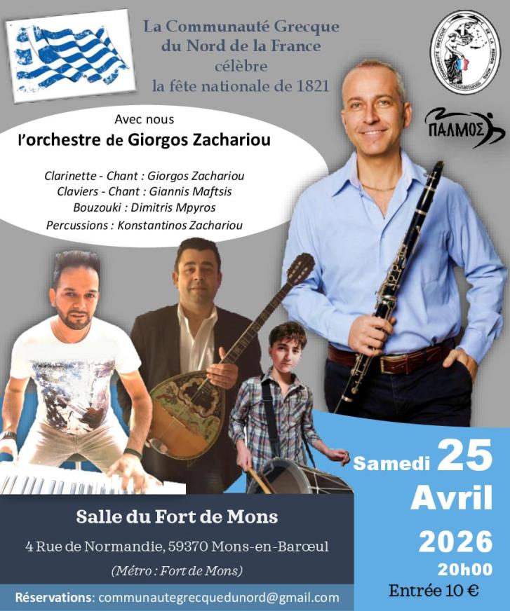 la Communauté Grecque du Nord, en collaboration avec son groupe de danse « Palmos », a le plaisir de vous convier à une soirée festive organisée à l’occasion de la célébration de la Fête nationale grecque du 25 mars 1821.