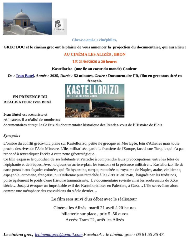 Films "Kastellorizo (une île au coeur du monde)" le 21 avril